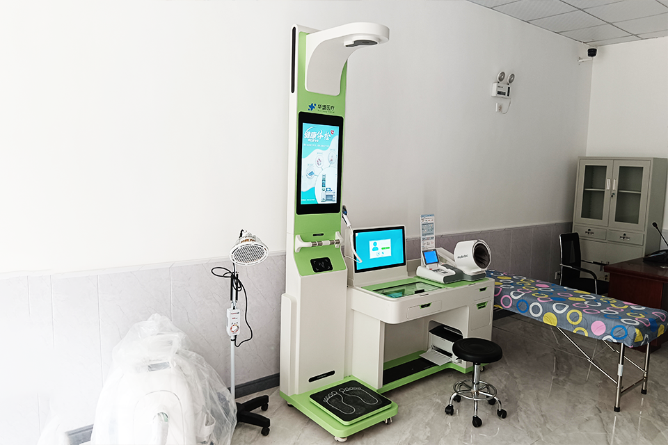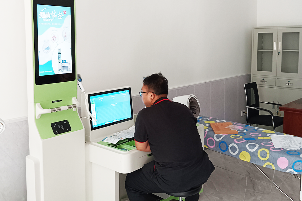 The hospital is equipped with a modular Telehealth Self-service Healthcare Kiosk that integrates more than ten basic testing functions such as height and weight, blood pressure and blood oxygen, and electrocardiogram testing. The ultrasonic height measurement system on the equipment realizes contactless measurement, and with the ergonomic testing cabin design, wheelchair-bound elderly people can also complete the test easily. Through the external ID card reader and health card recognition module, the system can automatically create files and associate historical data. Nursing staff can complete a full set of health checks through the touch screen interface, and the test data is uploaded to the cloud health file in real time.