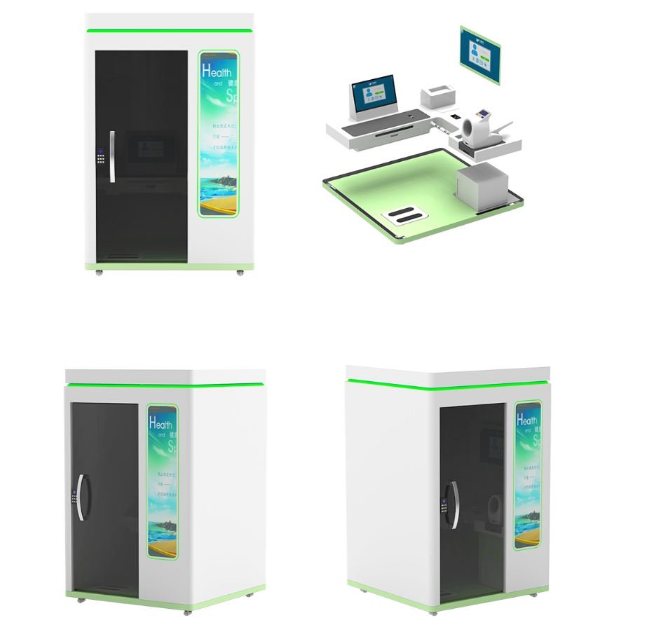 3. The unlocking measurement project adopts a tiled countertop design, simple and intuitive. The blood pressure meter adopts a drawer structure design to meet the needs of people of different heights. Built-in air conditioning is met to meet the needs of different semi-open environments, and ensure that users use this equipment in a comfortable environment: built-in ultraviolet antivirus and automatic hand washing and disinfection machine to ensure the clean and hygienic environment of the equipment to the greatest extent.