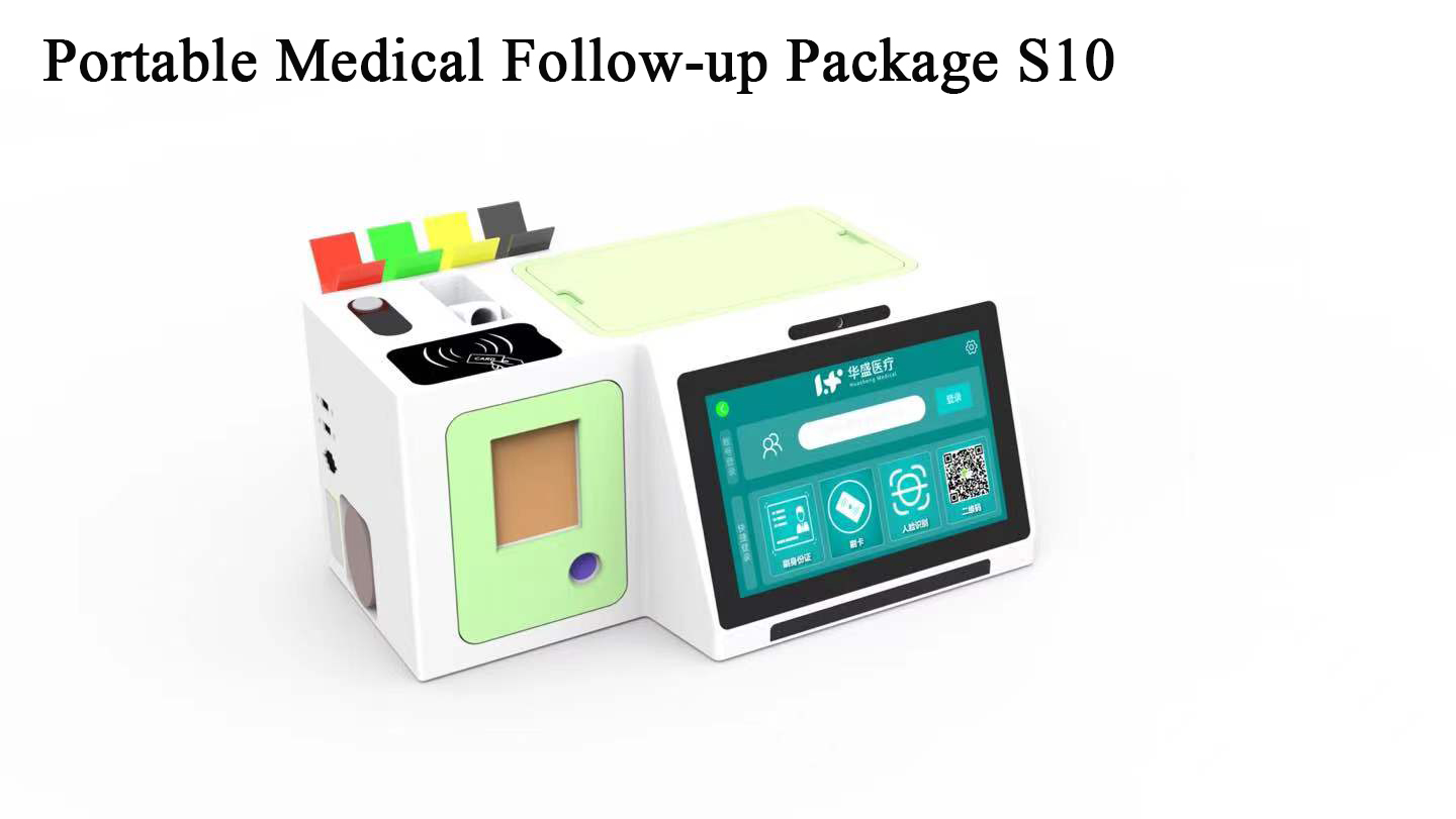 The portable health management all-in-one machine HS-S10 is an intelligent follow-up device that integrates physical examination, evaluation, file building and monitoring independently developed and produced by Shenzhen Huasheng Medical Technology. The equipment is beautiful and atmospheric, with high-quality accessories, accurate measurement, and adopts a new Android system, fully automatic measurement, with voice broadcast, electronic display, and optional face recognition function. Not only that, it also supports a standardized system for docking area. The equipment is small and beautiful, and is easy to carry as an auxiliary device for village doctors to go to the countryside and home doctors to help collect difficult-to-reach information. It is widely used in various grassroots public health, health huts, schools, elderly health centers, enterprises and institutions, etc. that require mobile testing.